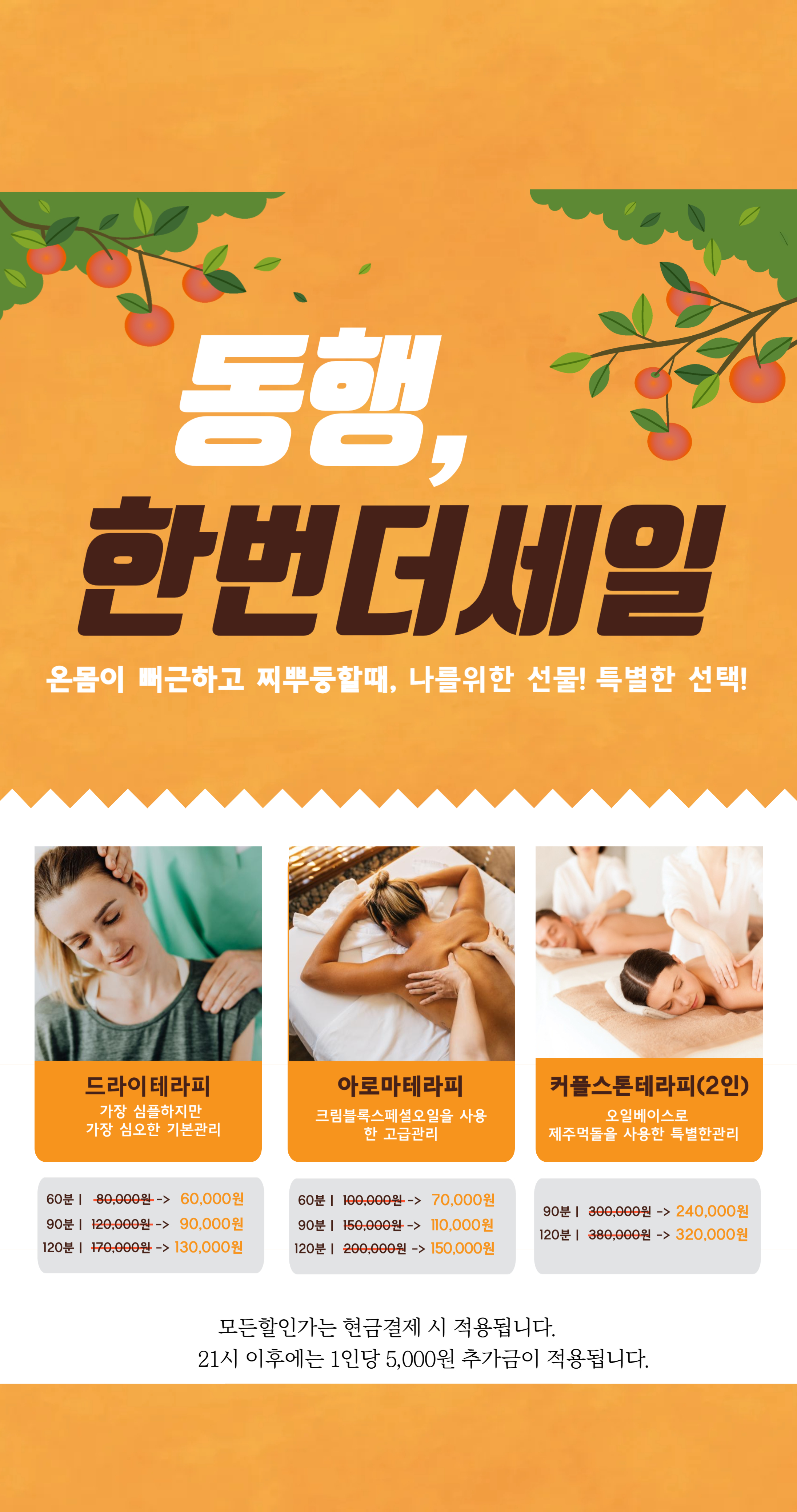 아로마 70분/100분/130분;건식 70분/100분;VIP코스 130분;임산부 코스 70분/100분;자녀성장 코스 70분/100분;발관리 50분;