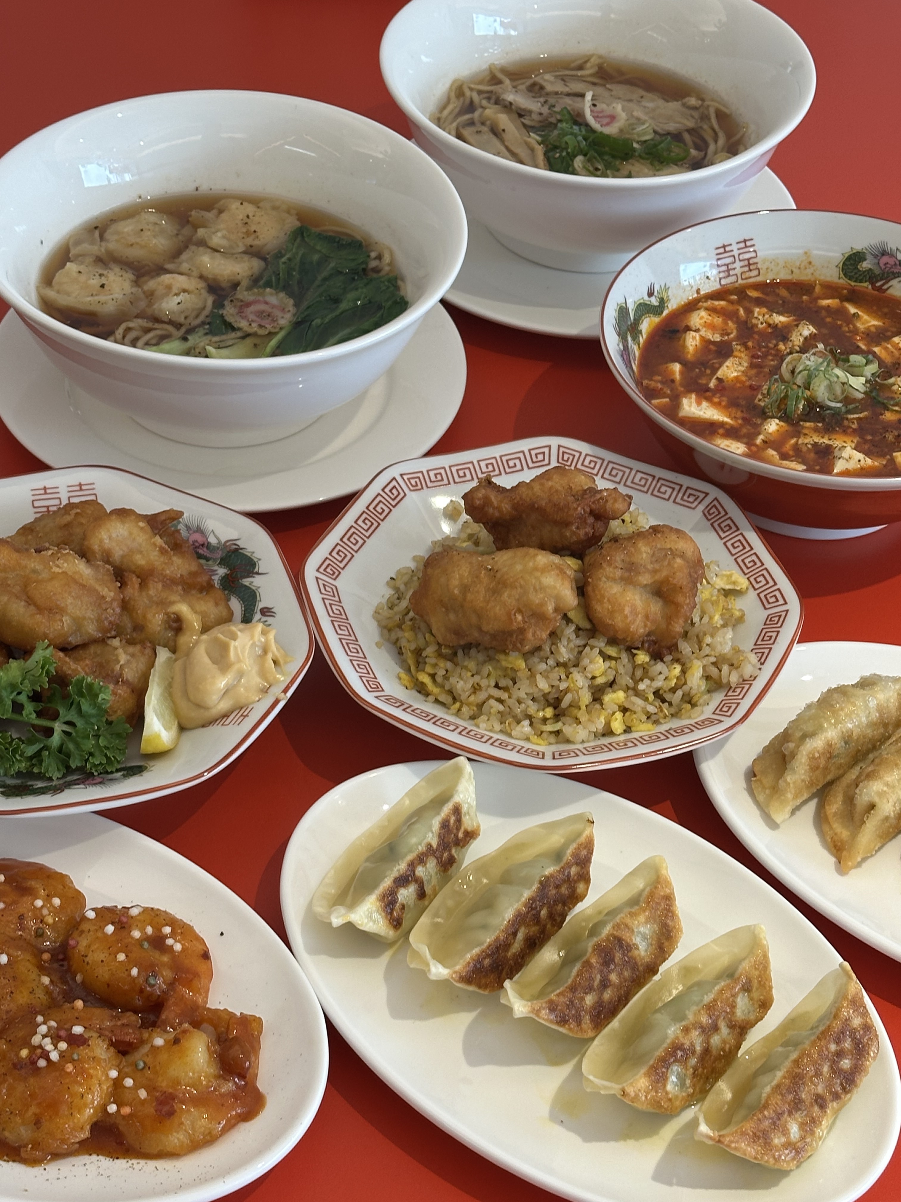 마파두부;츄카소바;완탕멘;차항;에비마요;에비치리;가라아게 차항;가라아게;튀김교자;시오콘부 오이 사라다;