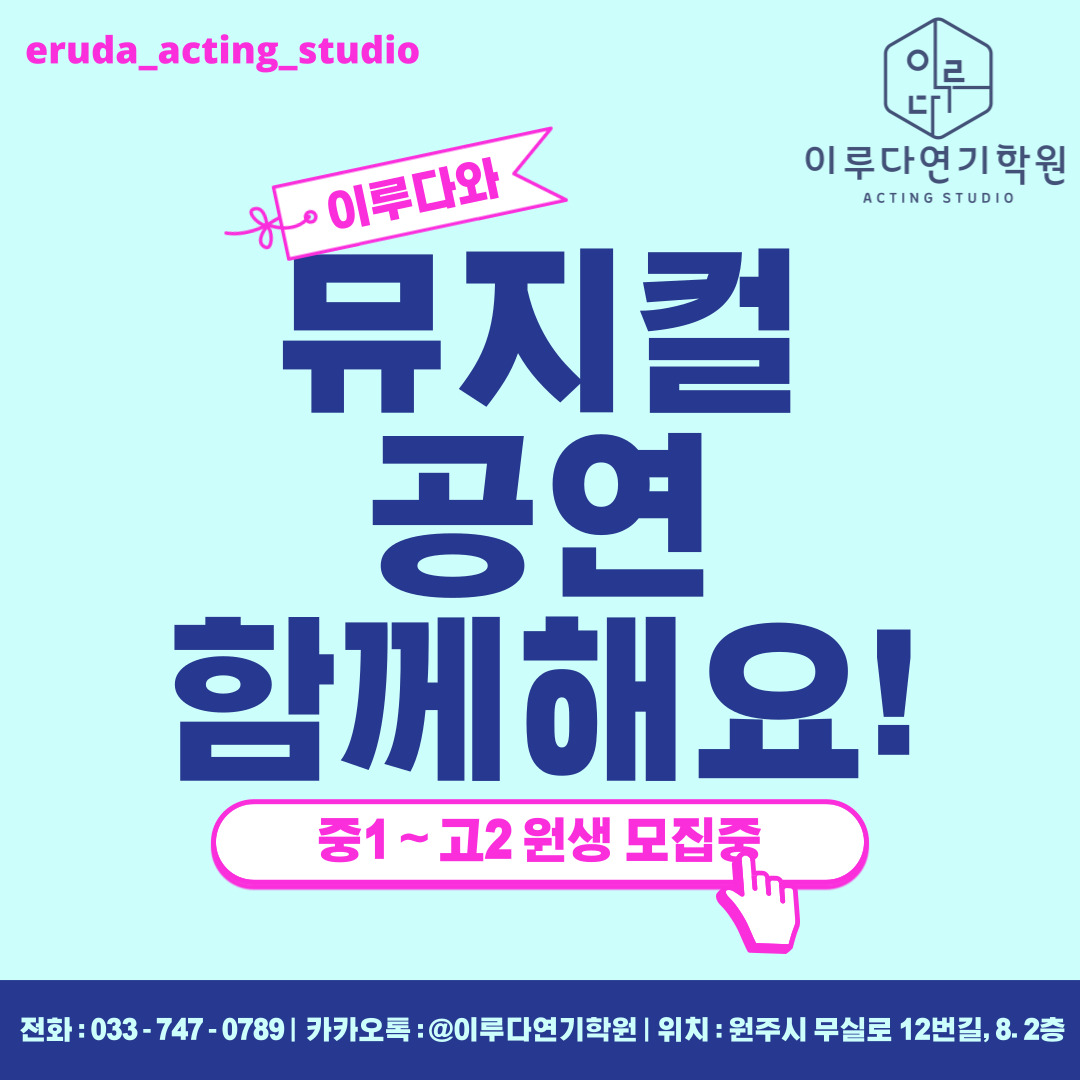 주소 : 강원 원주시 무실로12번길 8 2층 이루다 액팅스튜디오