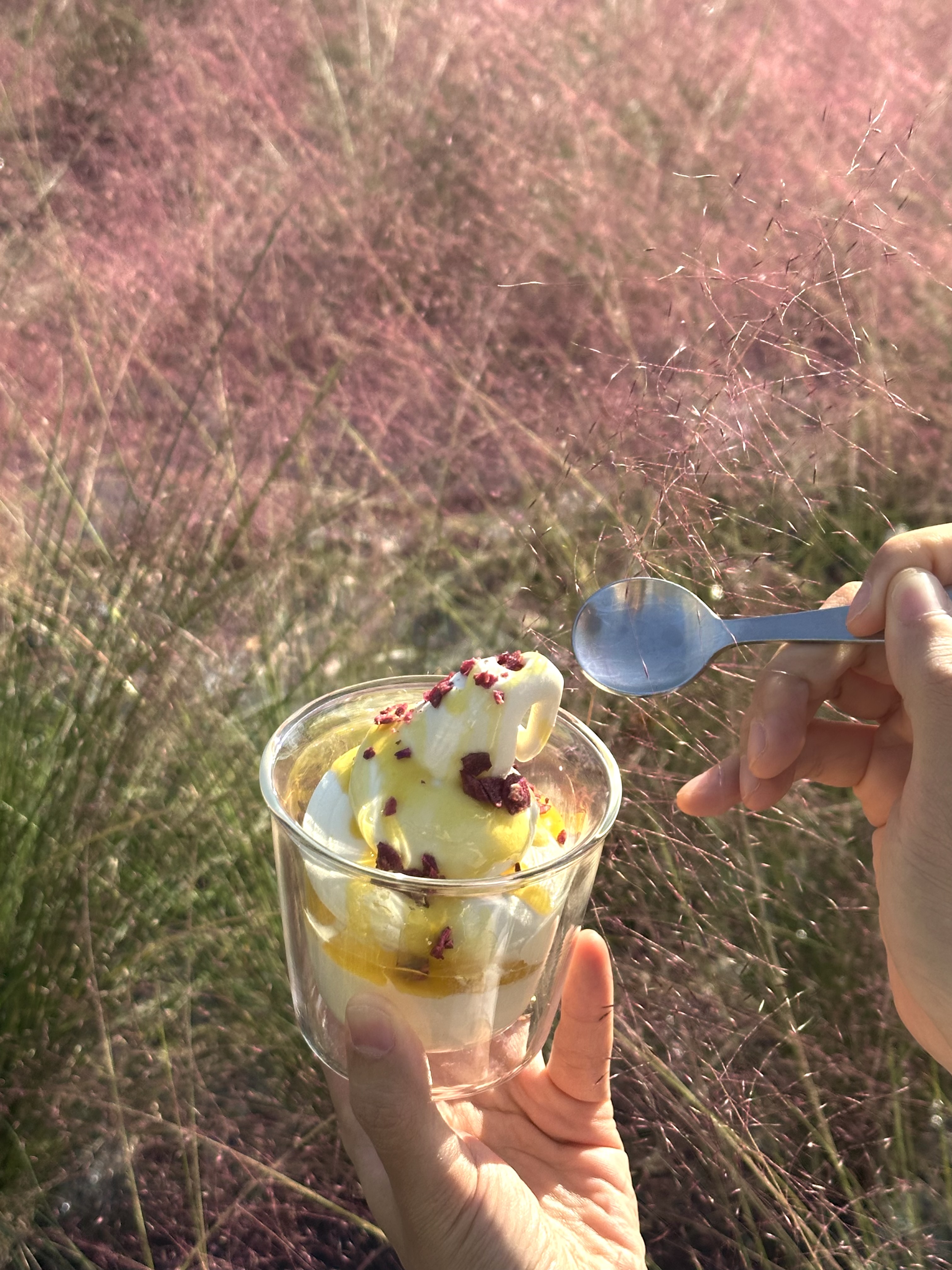 카페 앞에 펼쳐진 핑크뮬리 밭이 정말 장관이에요.