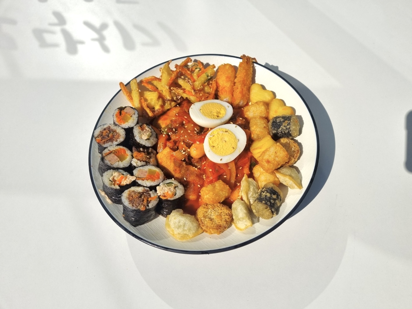 쌀떡볶이;수제튀김;찰순대;묵은지참치김밥;야채꼬마김밥(5줄);물오뎅(미도);