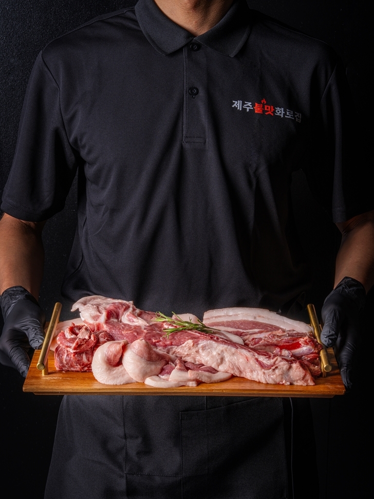 흑돼지 生 뼈갈비;흑돼지 뽈살 모듬;흑돼지 목살;흑돼지 오겹살;흑돼지 숄더렉;흑돼지 매운 뼈갈비;흑돼지 매운 양념구이;제주화로불고기;흑돼지 A+ 껍데기;돼지 막창;흑돼지 스페셜;흑돼지 VIP 세트;흑돼지 VVIP 세트;비빔 냉면;물 냉면;흑돼지 김치찌개;흑돼지 김치전골;실비 파김치;점심특선 - 제주화로불고기;점심특선 - 흑돼지콩나물불고기;점심특선 - 낙지비…