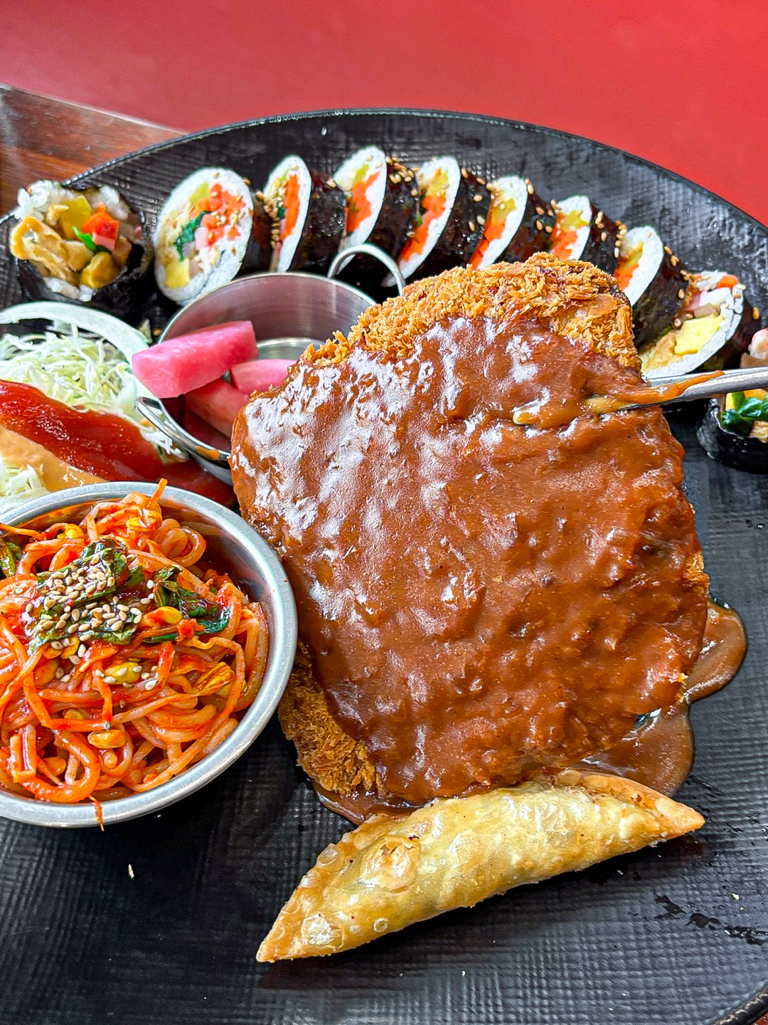 새우튀김김초밥;캘리포니아롤;알김초밥;새우튀김3마리;새우튀김2마리;김치김밥;참치김밥;치즈김밥;김밥;찐만두;우동;볶음우동;짬뽕우동;라면;떡라면;만두라면;치즈라면;만두국;떡만두국;떡국;쫄면;떡볶이;라볶이;알밥;제육덮밥;소고기덮밥;볶음밥;김치볶음밥;양판비빔밥;돌솥비빔밥;김치찌개;육개장;돈가스 (공기밥포함);오뎅;