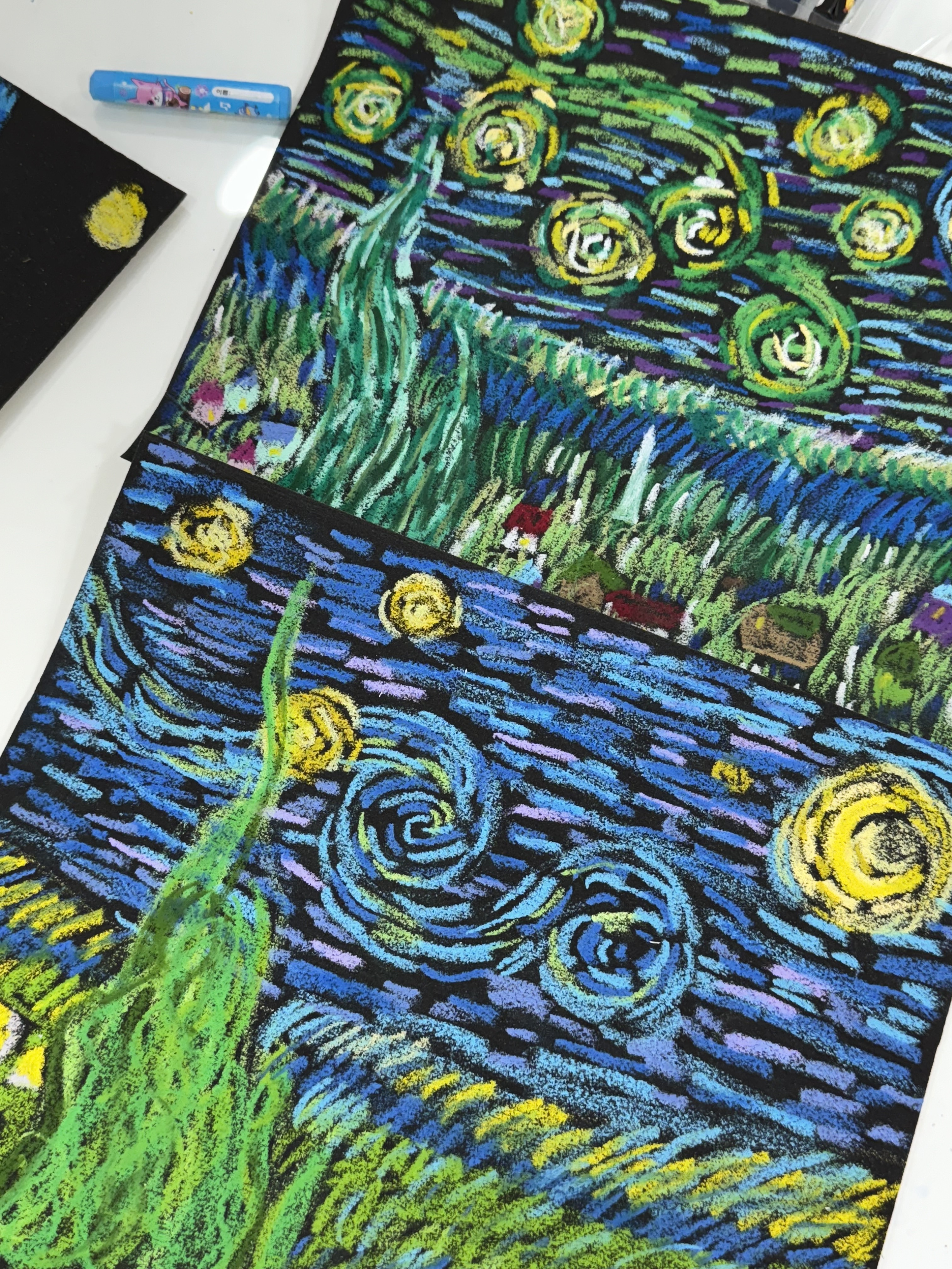 탄산빵 작성일선생님이 왕왕 친절하시고 편하게 알려주셔서 재미있는 시간이었어요ㅎ 오일파스텔드로잉이랑(왼쪽) 백드롭 페인팅(오른쪽) 신청해서 약 2시간정도 수업했어요! 저랑 친구한테는 교습소아니고 힐링센터ㅎㅎ 데이트하기도 완전 좋을듯! 또 갈게용 슨생님