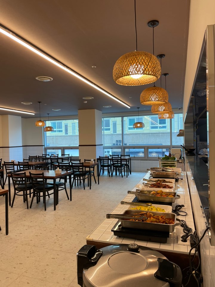 음식 종류는 그렇게 많진 않았지만 딱 먹을만한 음식들로 비치되어 있었어요 계란후라이도 해먹을 수 있고 라면도 끓여먹을 수 있더라고요 그리고 오늘은 육전냉면이 라이브코너에서 나왔고 라이브코너 음식은 바뀌는거 같더라고요 국도 국그릇에 그때그때 담아줘서 따뜻했어요 음식들은 전체적으로 짜지않고 맛있었습니다 가격 대비 괜찮은 한식뷔페인거 같아요!!!