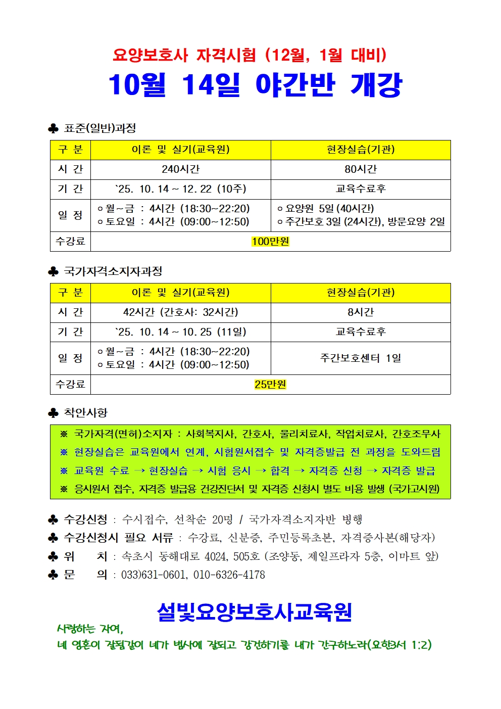 강원 직업교육 설빛요양보호사교육원