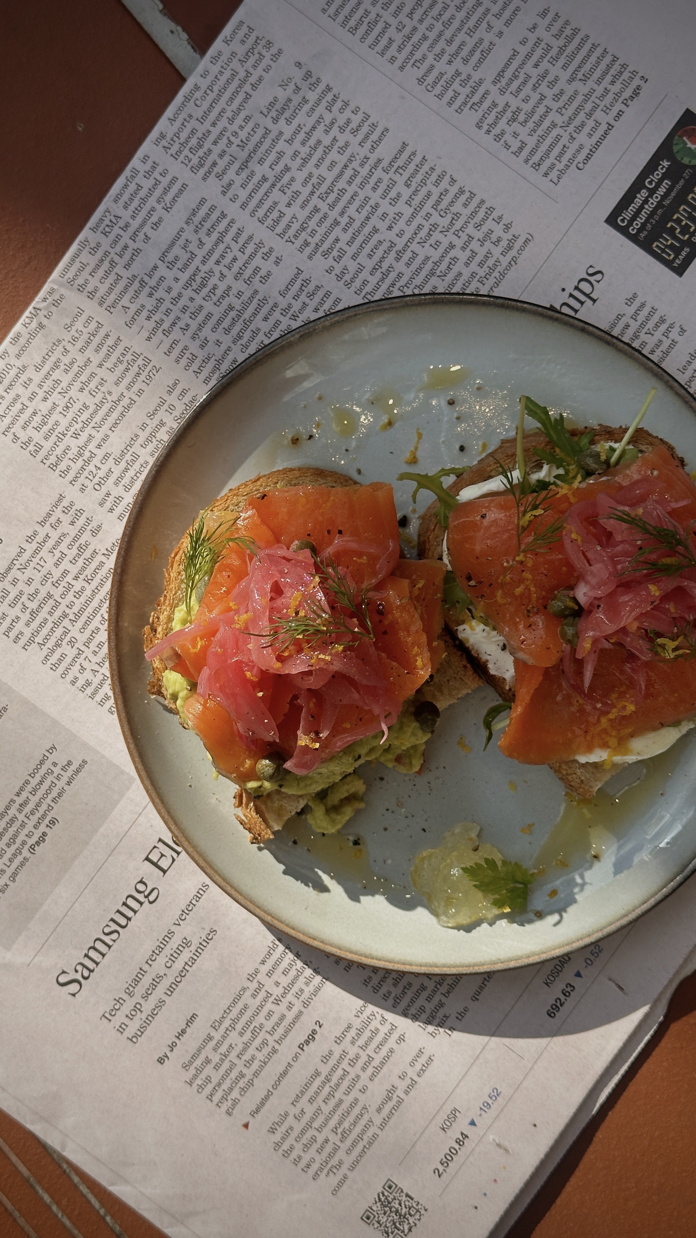 브런치 훈제연어 오픈 샌드위치