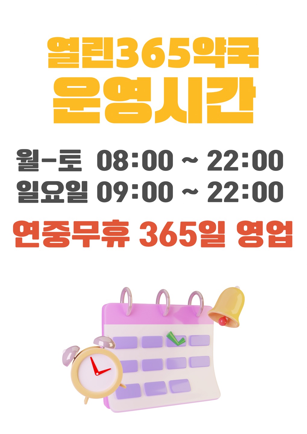 업무시간 : Day: 수, Start: 08:00, End: 22:00Day: 목, Start: 08:00, End: 22:00Day: 금, Start: 08:00, End: 22:00Day: 토, Start: 08:00, End: 22:00Day: 일, Start: 09:00, End: 22:00Day: 월, Start: 08:00, End: 22:00Day: 화, Start: 08:00, End: 22:00