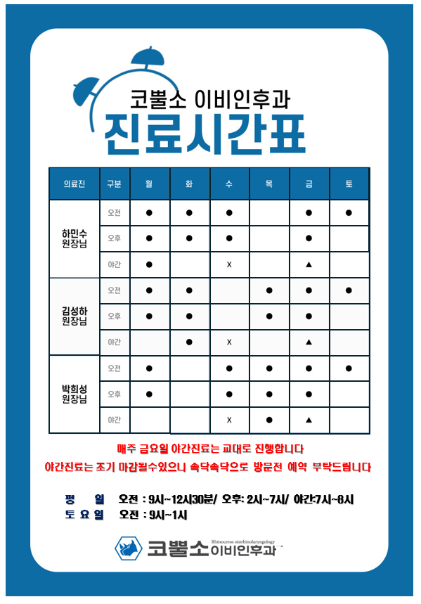 주소 : 대전 서구 계룡로 599 5층 코뿔소이비인후과
