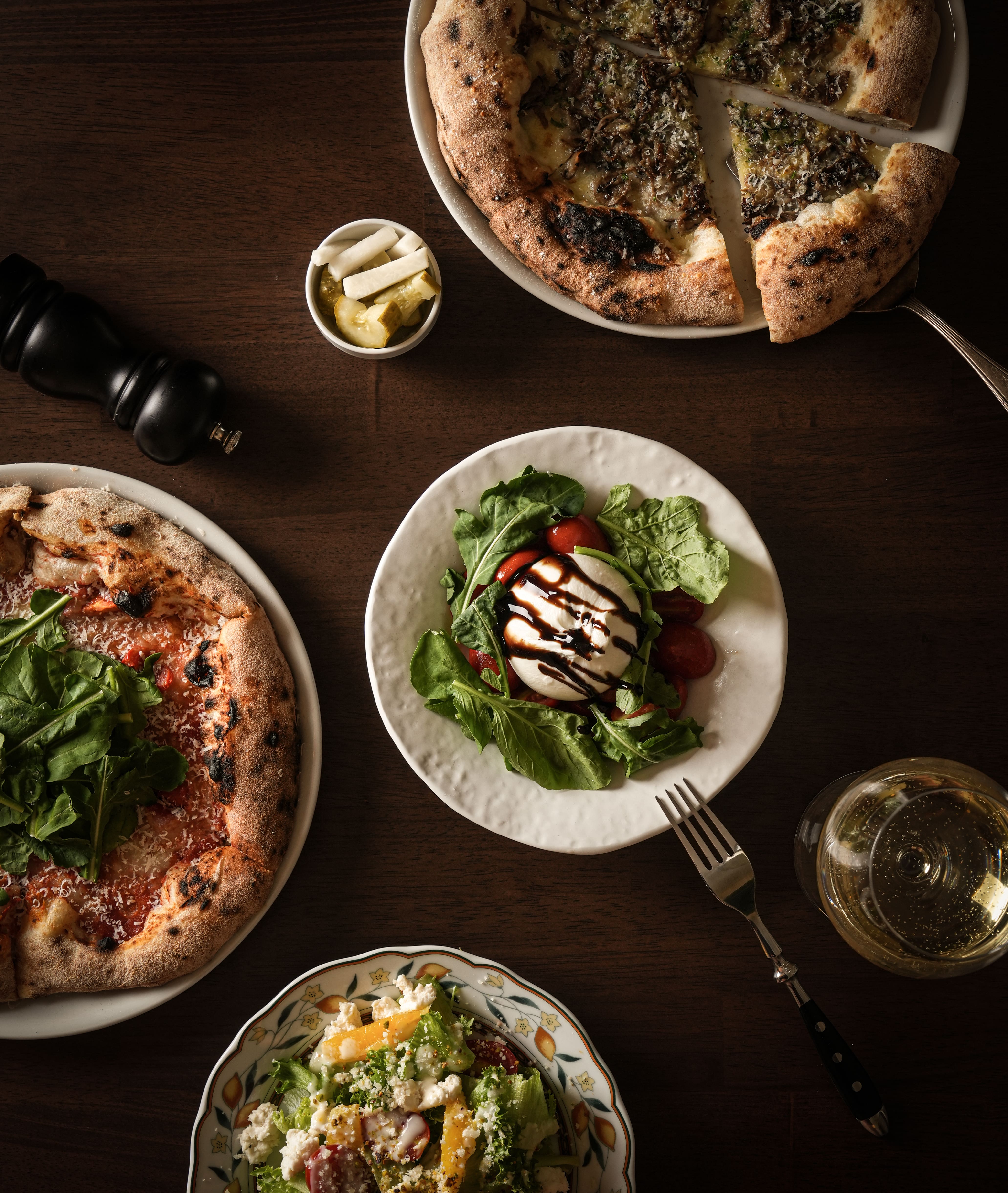 노르마 피자(가지×리코타): 바삭쫄깃한 도우에 담백한 리코타와 구운 가지가 균형 좋음.