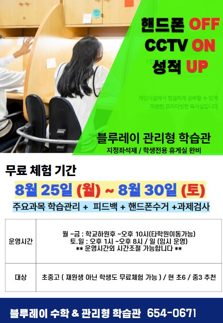 전남 교습소 블루레이 수학 & 관리형학습관 웅천점