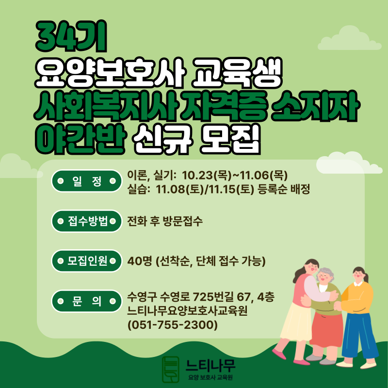 부산 직업교육 느티나무 요양보호사교육원