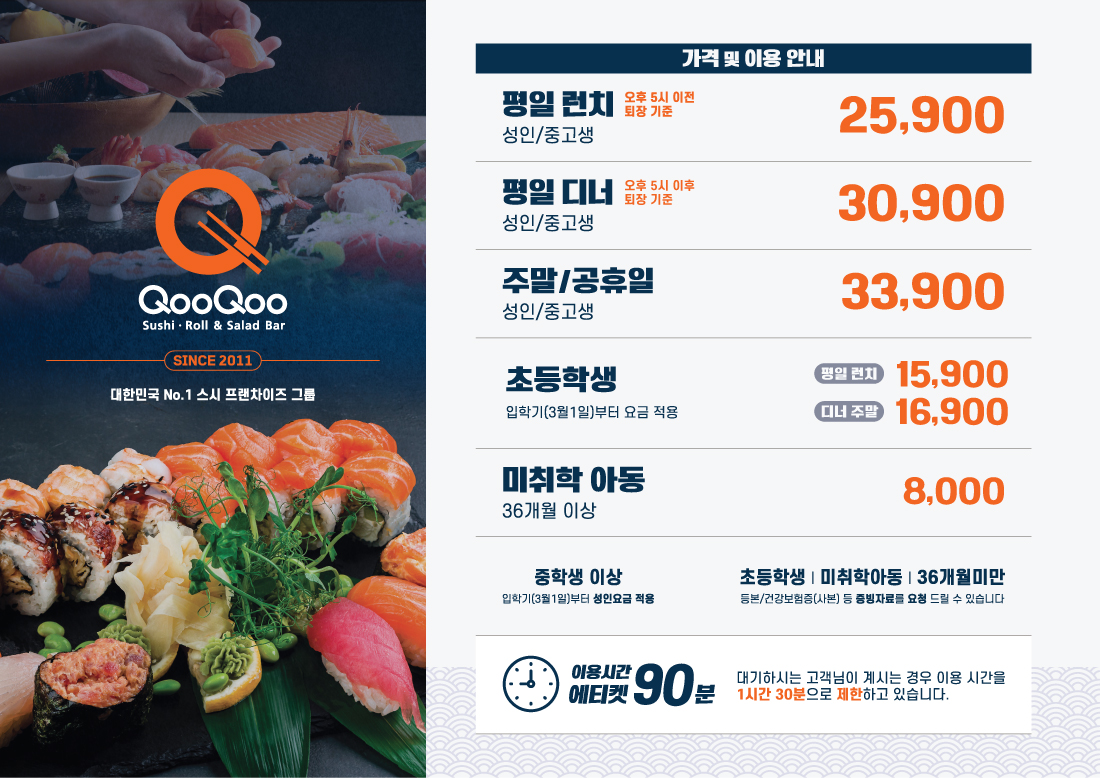 평일런치(오후5시 이전);평일디너(오후5시 이후);주말 및 공휴일;초등학생 (평일런치);초등학생 (평일디너 /주말);미취학아동(36개월 이상);주류 판매;