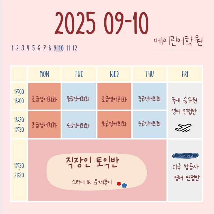 소수그룹수업 토익RC;소수그룹수업 토익LC;영어회화(초급/중급);국내&외국항공사 승무원/영어면접/;