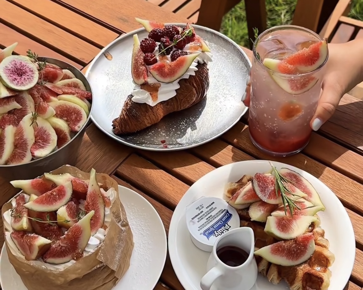 무화과 빙수;무화과 크로플;무화과 카스테라;무화과에이드;아메리카노;화이트 크림라떼;블랙 크림라떼;아인슈페너;크림모카;라떼;바닐라라떼;리얼애플망고스무디;딸기라떼;플레인크로플;로투스크로플;쇼콜라크로플;브라운치즈크로플;두바이크로플;엔트라브런치;로스트 닭다리살 샐러드;부라타치즈샐러드;고르곤졸라피자;페퍼로니피자;망고치즈빙수;오레오몰티져스 빙수;인절미 빙수;두바이 빙…