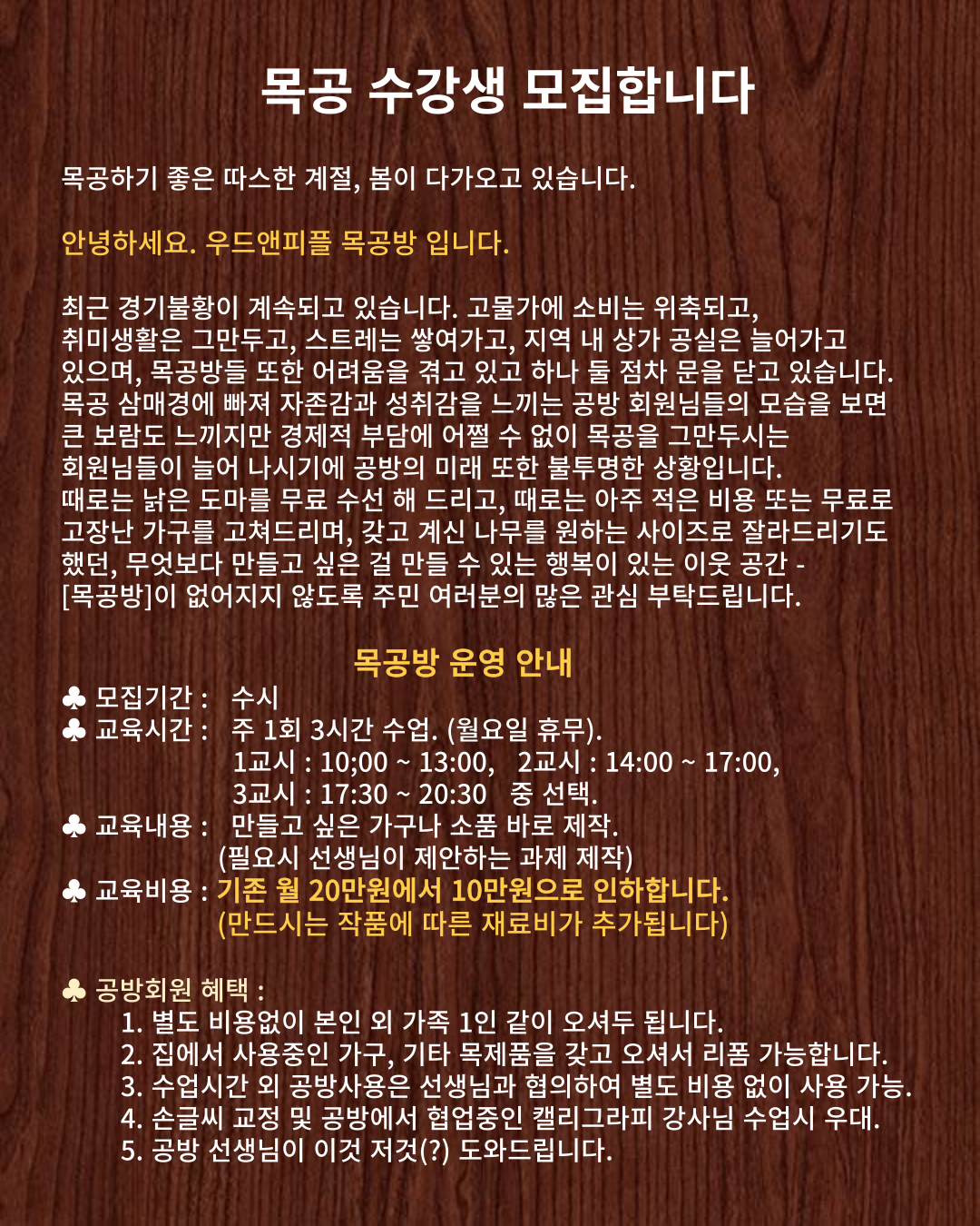 국내 최초 취미전문 보컬학원;음악을 즐겁게! 초보자 환영;No Pain, Yes Gain!;1개월(4회기준);3개월(12회) *3만원 할인;6개월(24회) *9만원 할인;언제든 학원악기/연습실 이용가능;️ 맛있는커피, 음료 무한제공;