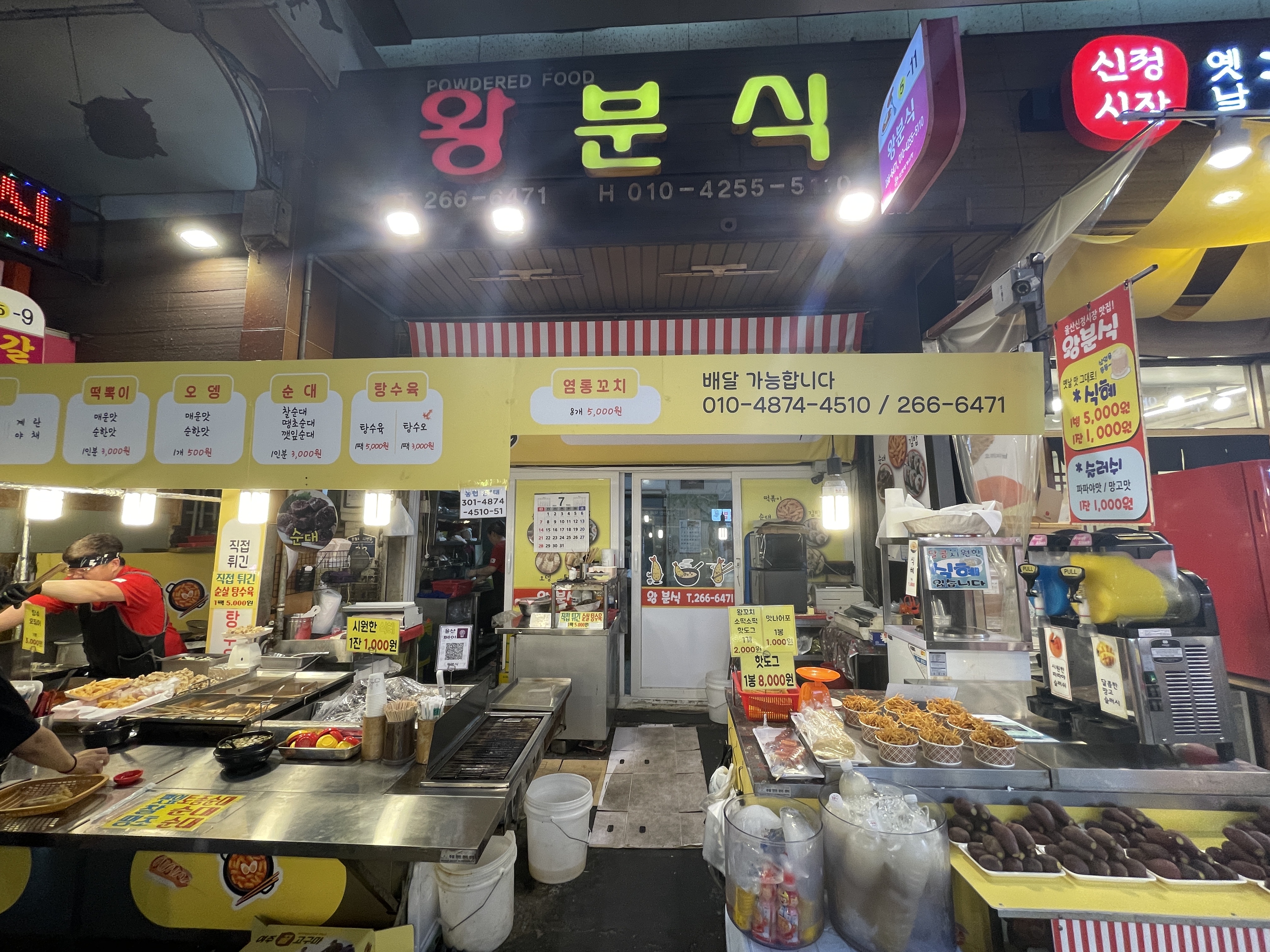 식혜(1.8L);빠스(맛탕);탕수육/탕수오;6가지 어묵;튀김 2개;순대;떡볶이;