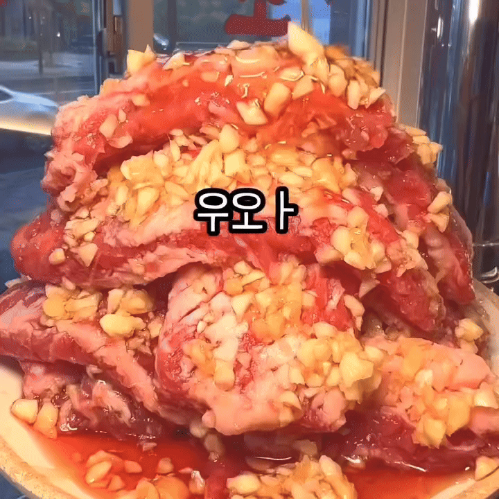 살치살;생 소갈비살 (100g);양념 우(牛)갈비;양념 정(正)갈비;안창살(특수부위);양념 안창살(특수부위);육회한판(150g);순두부찌개;된장찌개;무생채비빔밥;물냉면;비빔냉면;계란찜;