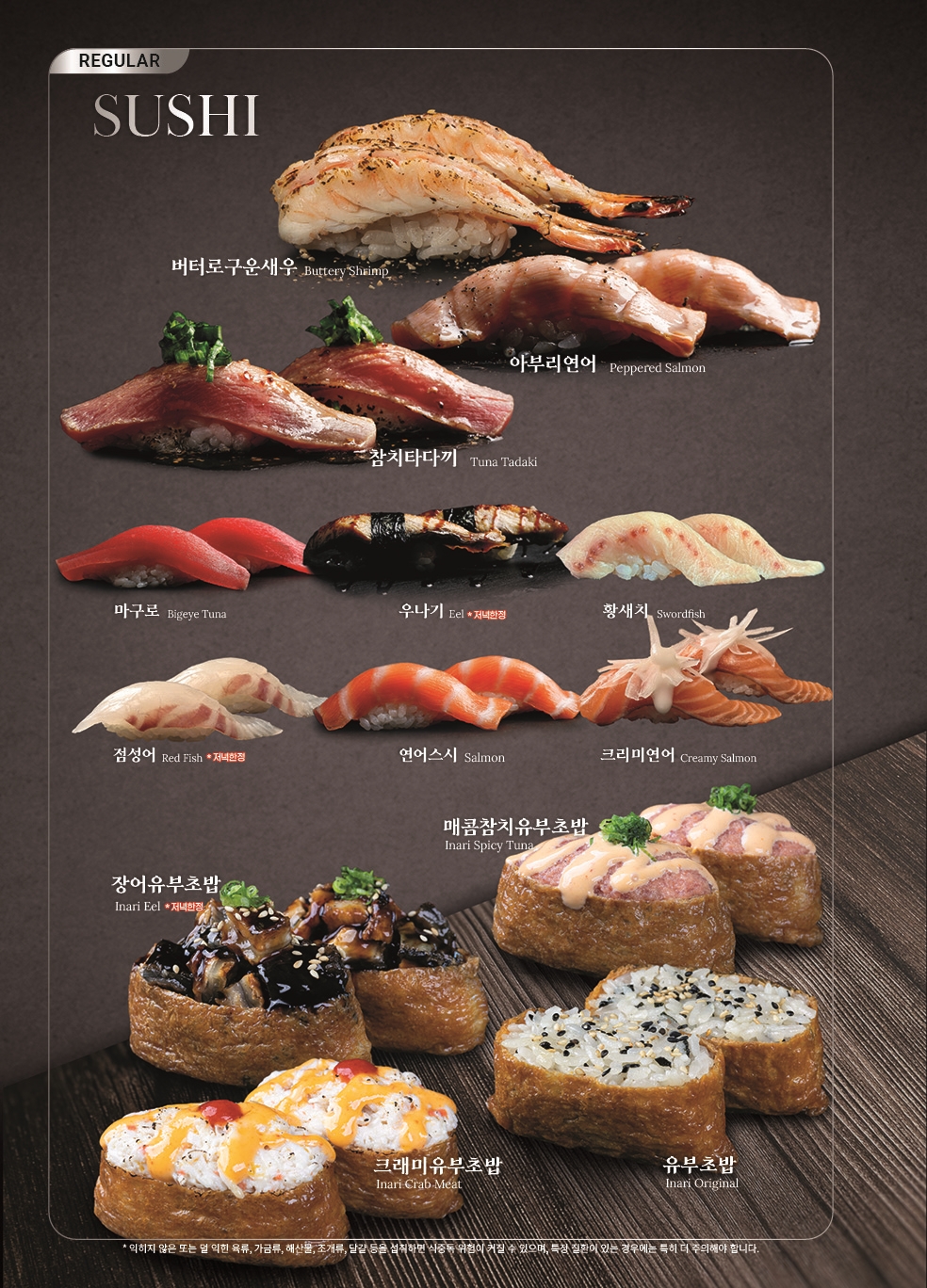 무한리필주문시 샐러드바 포함;무한리필주문시 디저트포함;칸스시 프리미엄 추가메뉴;칸스시 저녁 및 주말공휴일 무한리필;칸스시 런치 무한리필;