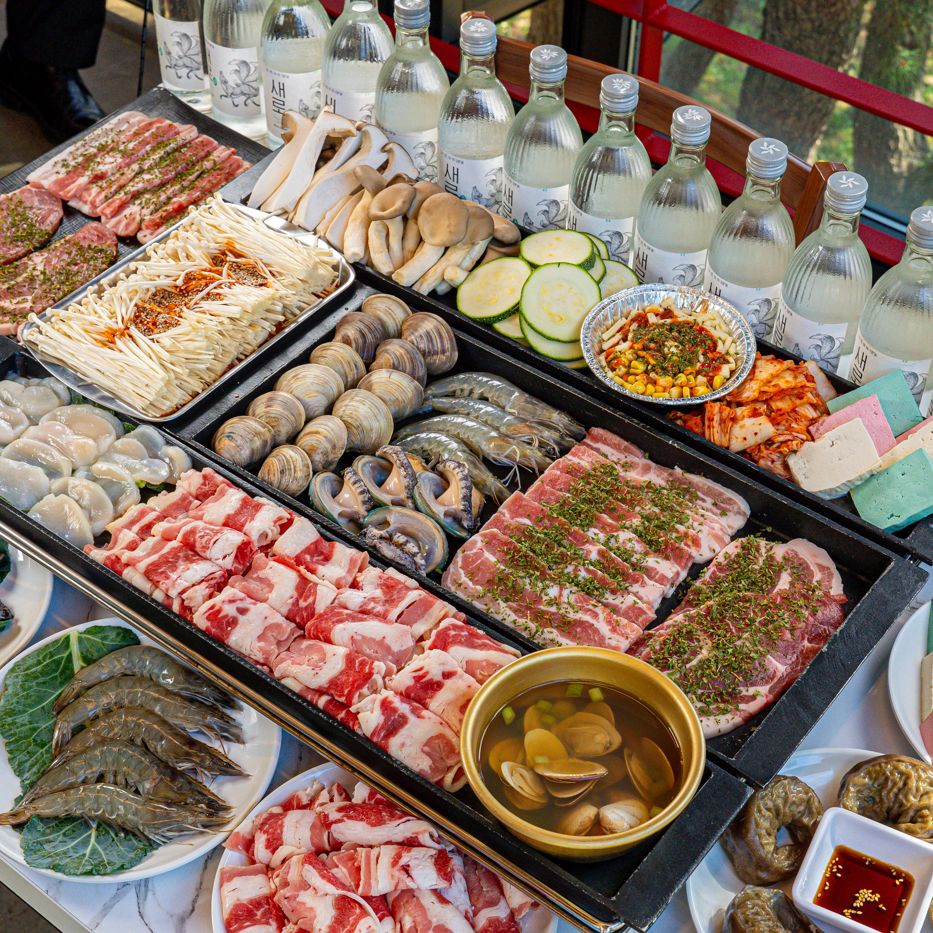 오늘 가족이랑 해물샤브샤브 먹으러 갔다. 음식 나오는 거 보고 진짜 놀랐다. 양이 엄청 많았고 새우, 전복, 조개 이런 해물이랑 버섯, 야채 종류도 다양했다.