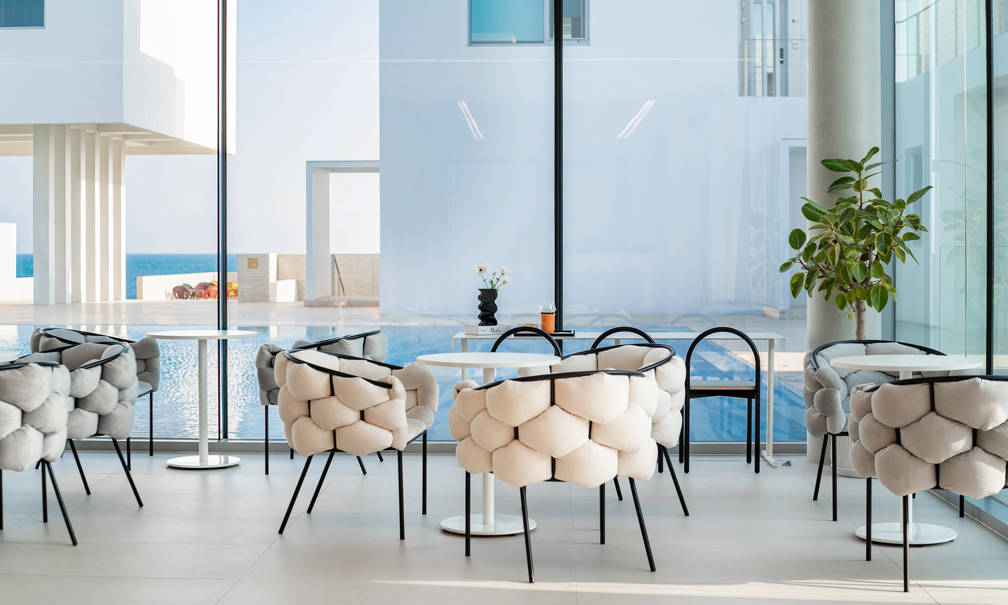 통창 너머로 바다가 훤히 보이는 뷰가 너무 시원하고,