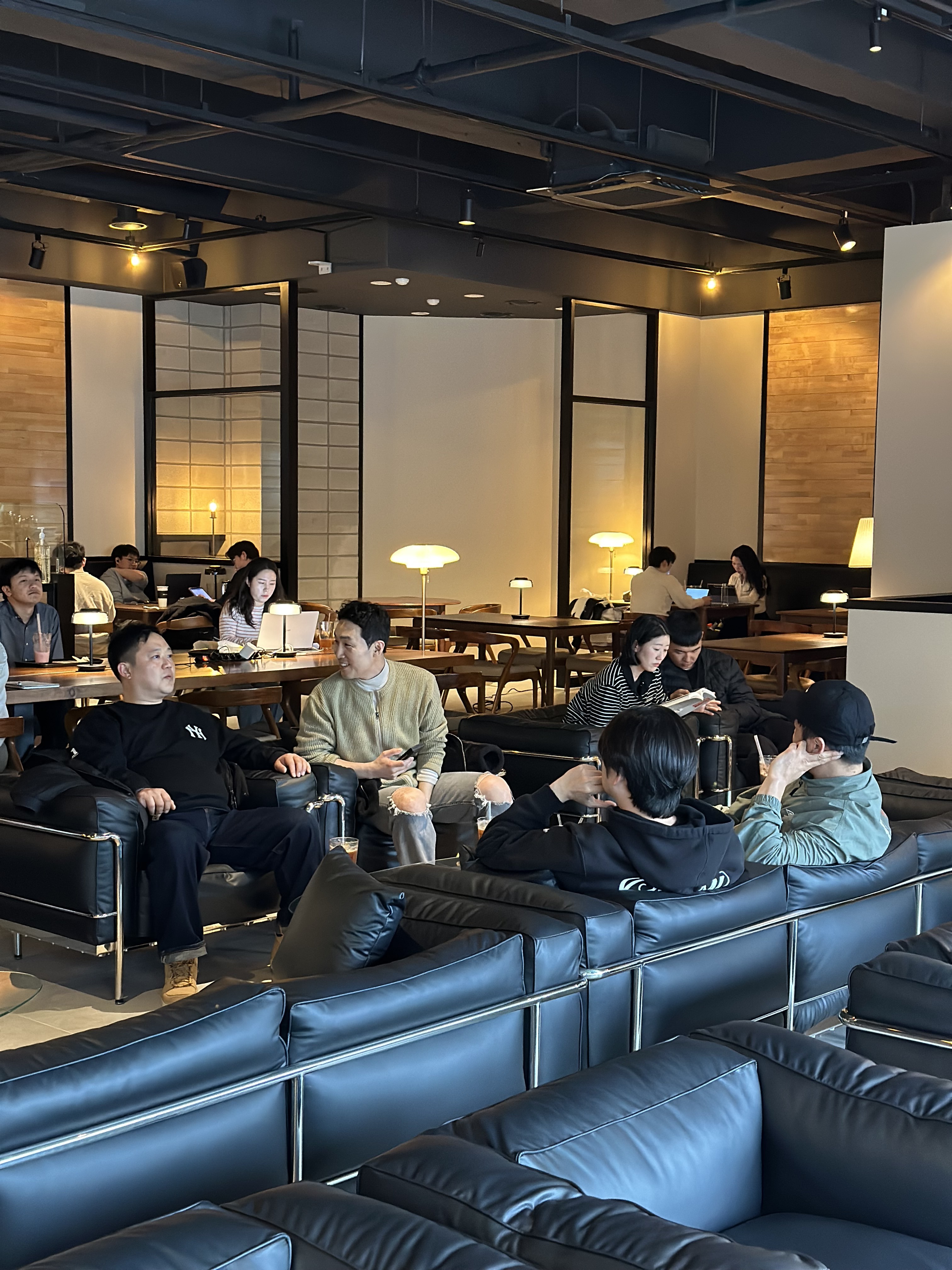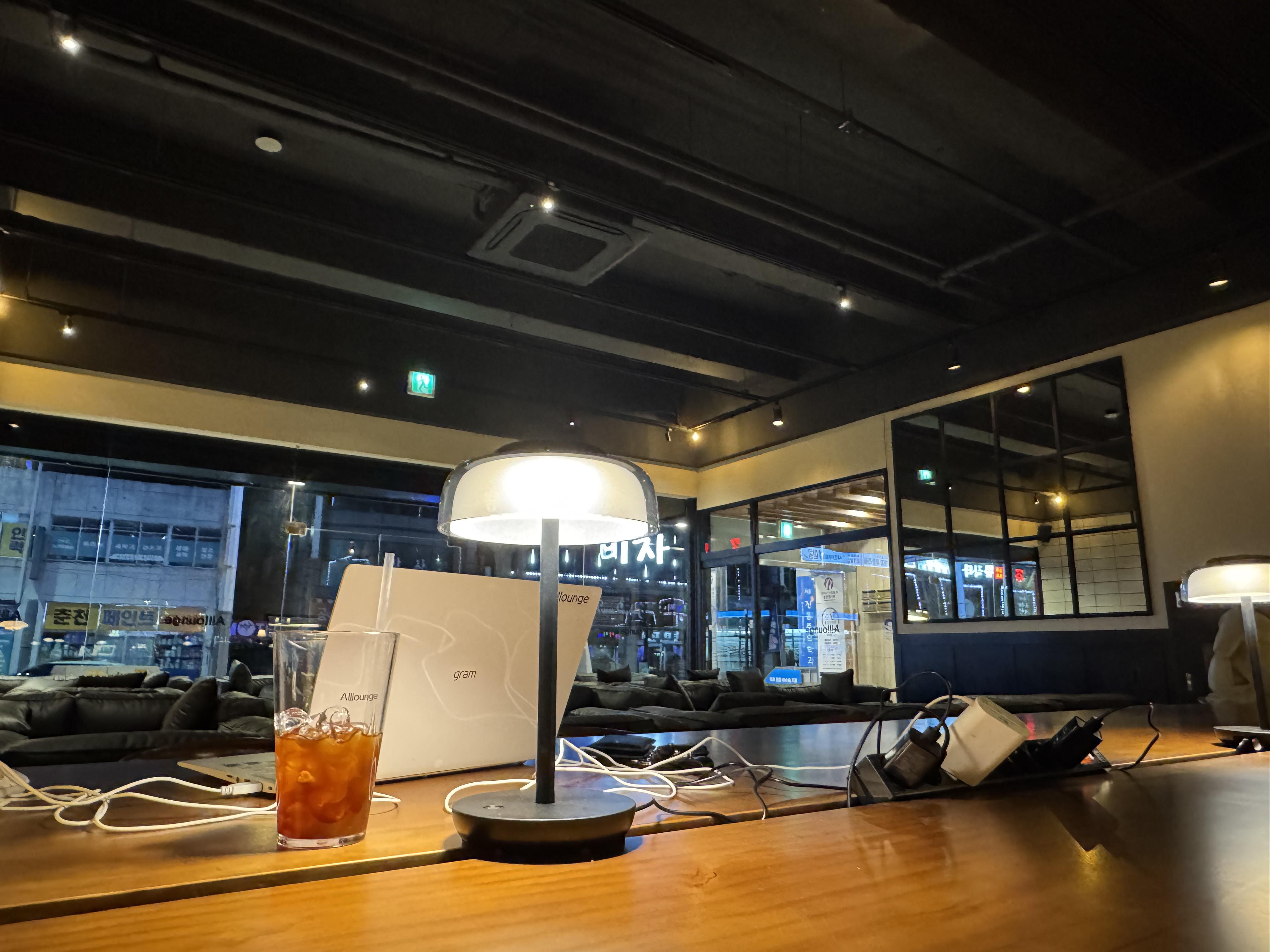 블랙톤 인테리어에 은은하게 조명이 들어가서 작업, 공부에 집중하기 정말 좋습니다! 실제로 작업이나 공부하시는 분들이 와서 조용하고, 노래 선곡도 너무 좋네요. 심지어 공간이 넓어서 오픈된 나만의 공간이 생긴 느낌까지 들어요.