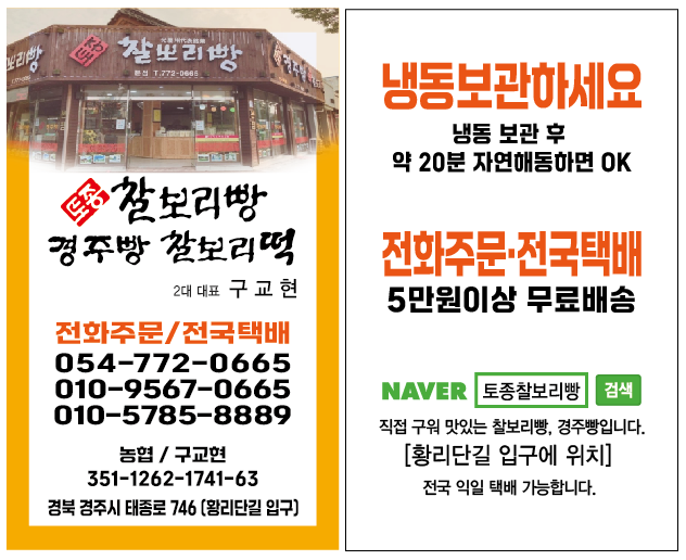 주소 : 경북 경주시 태종로 746 토종찰보리빵경주빵황남본점