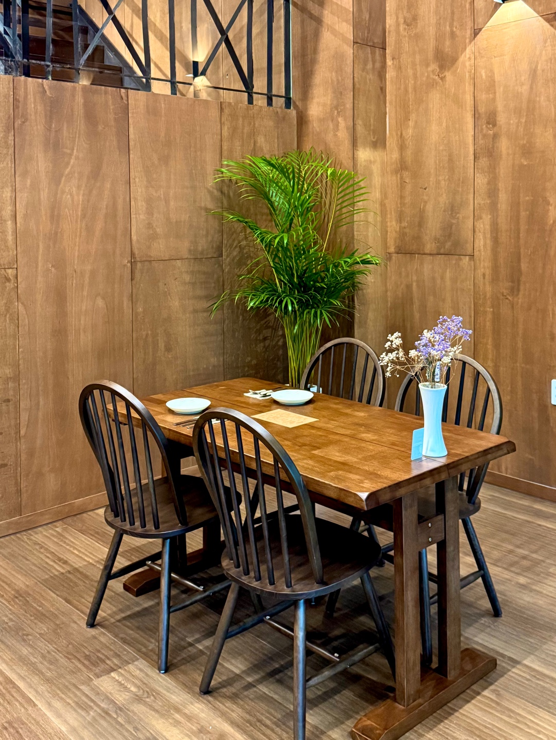 우드톤 인테리어라 따뜻해보이고 LP판 덕분에 좀 더 힙하고 고급스러운 느낌이랄까?
