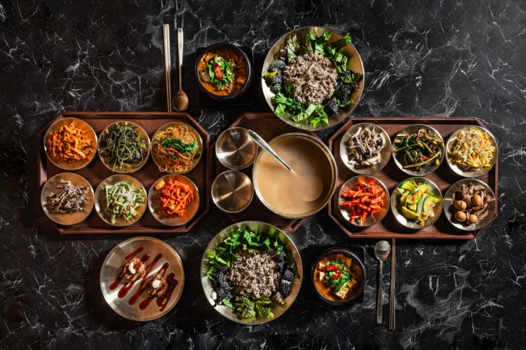 비빔밥에 같이 들어가는 나물반찬은 셀프바에서 가져다 먹는방식이라