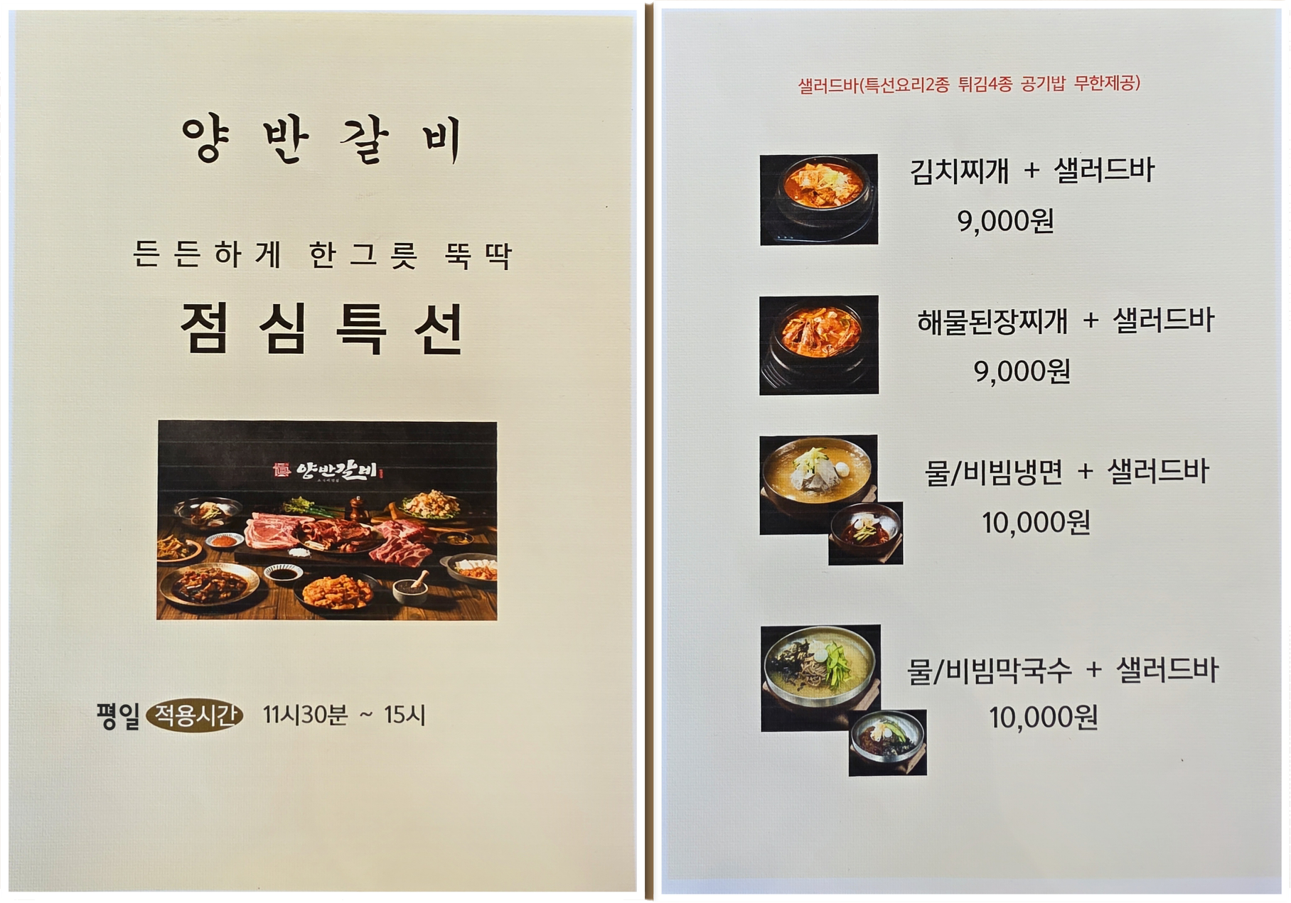 종류도 더욱 다양하고 맛도 업그레이드요! 초벌삼겹은 두툼한데도 입에서 살살 녹구요~양갈비에 양념갈비가 진짜 맛있습니다~다양한 뷔페에 넓은 실내까지~주차장도 넓고 직원들,사장님 친절하셔서 좋아요~이제 무조건 외식은 양반갈비입니다~!!