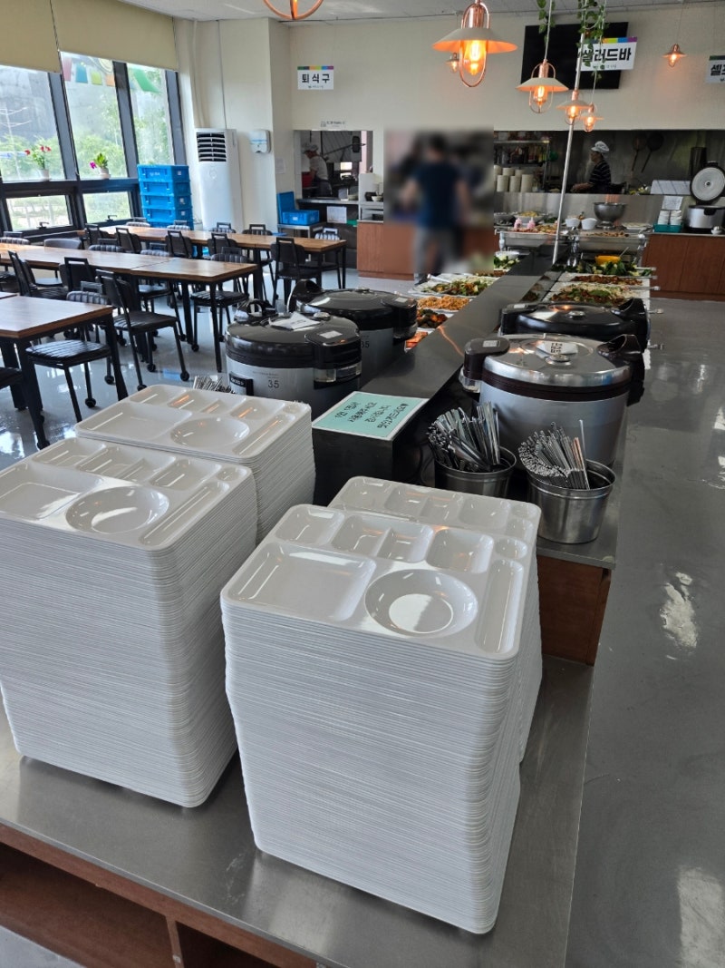 흥분 된 마음으로 식판에 음식을 담는데