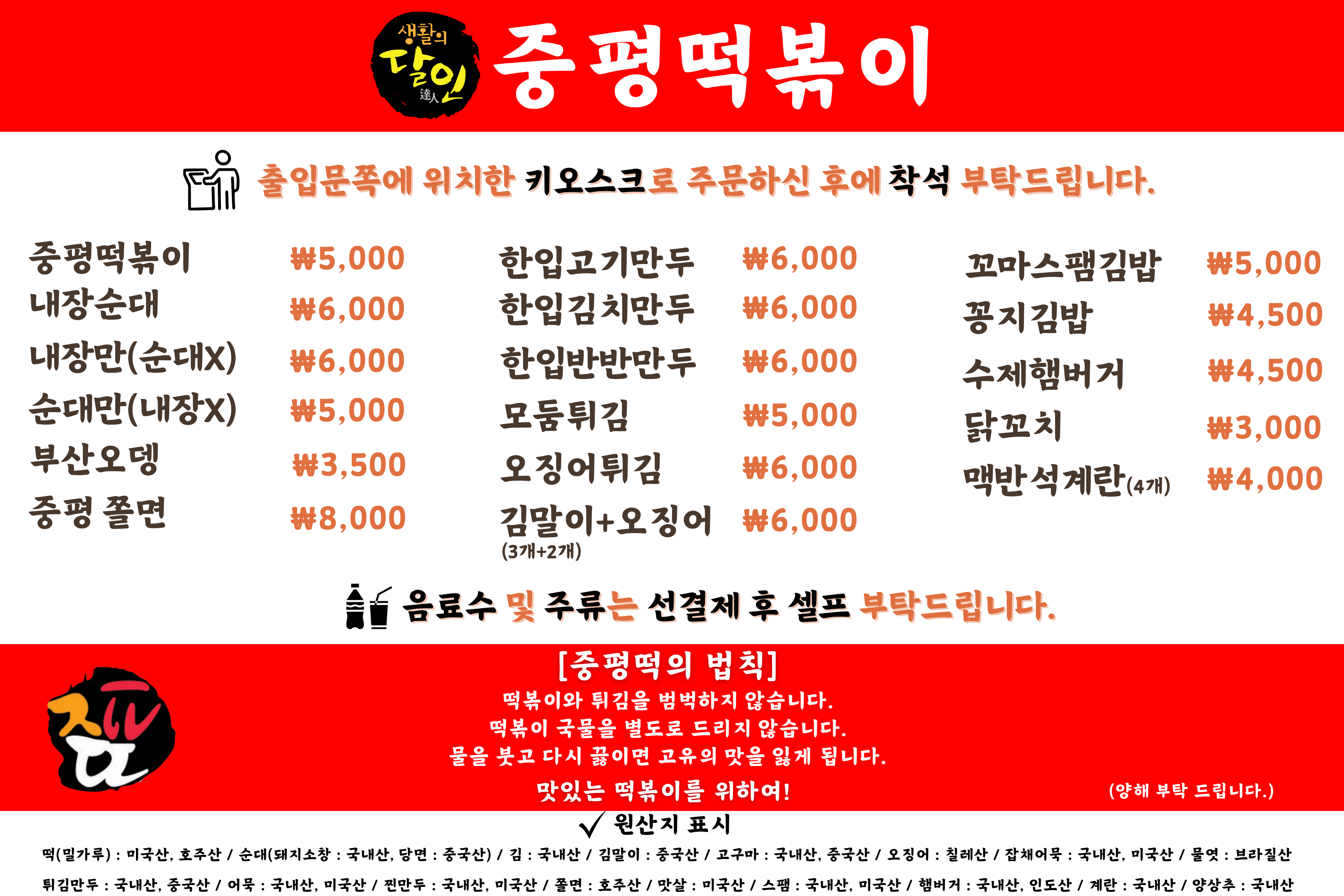 중평떡볶이중평 쫄면