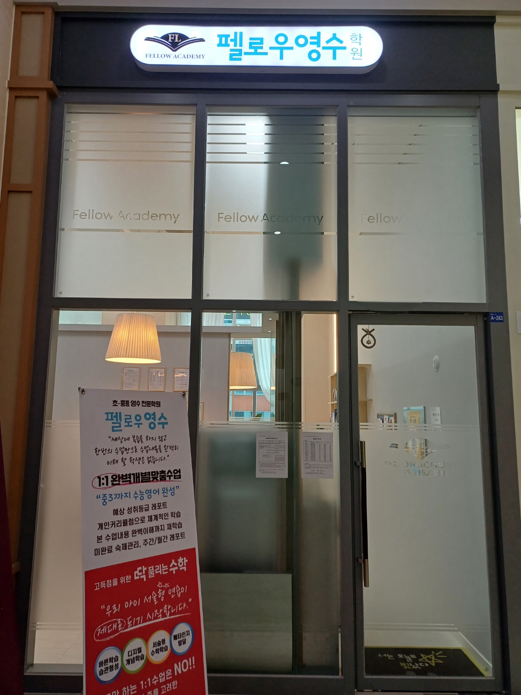 jym**** 작성일펠로우영어딱풀리는수학학원은 공부하기 좋은 차분한 분위기가 특징이에요. 1:1 맞춤 학습과 철저한 개별진도 관리를 통해 학습 효율을 극대화해줘요. 또한 오답분석을 통해 완벽한 내신관리가 가능해요. 집중력을 키우고 싶은 분들께 적극 추천합니다!