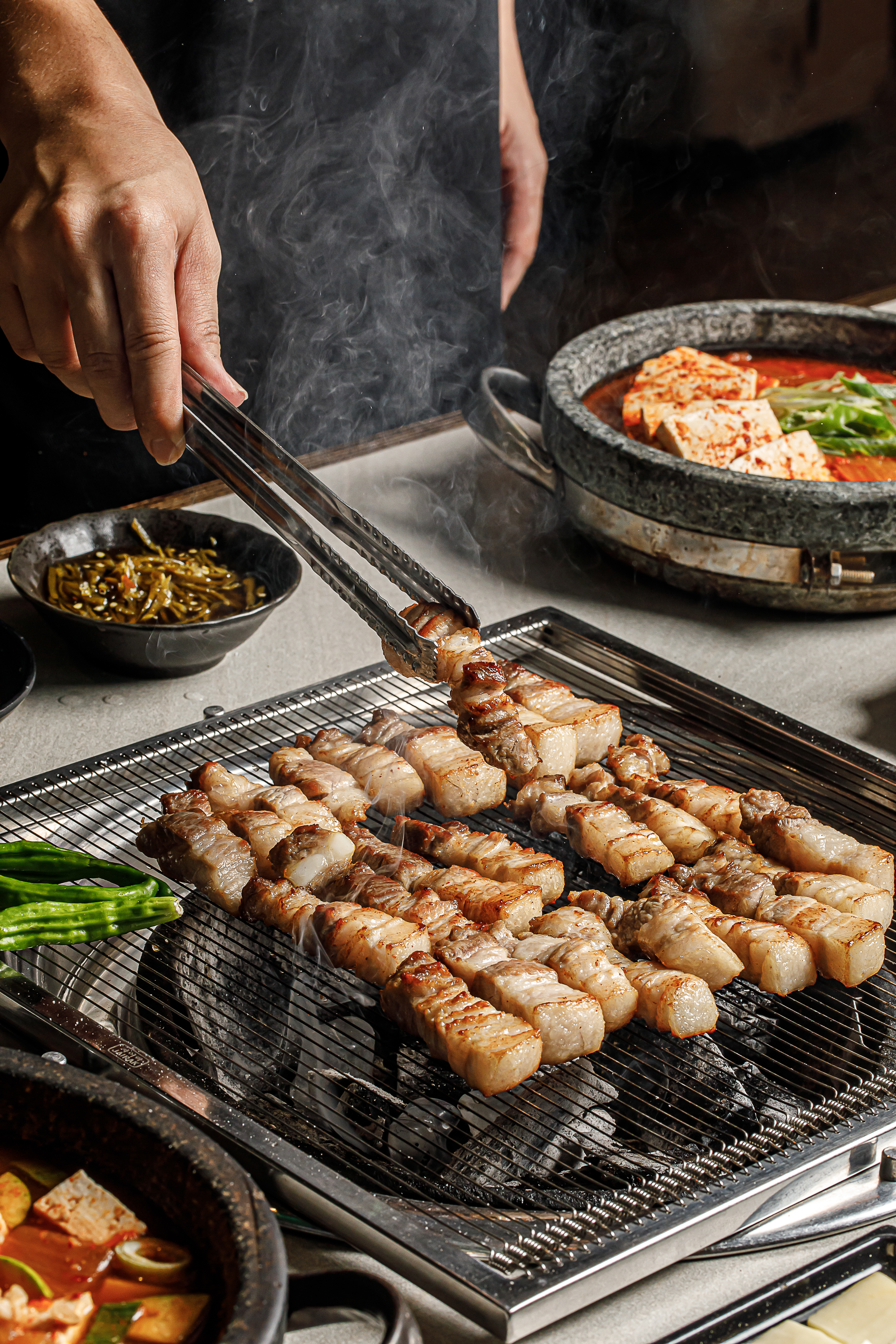 숯불 위에서 직원분이 직접 정성스레 고기를 구워주셔서 우리는 맛있게 먹기만 하면 돼요