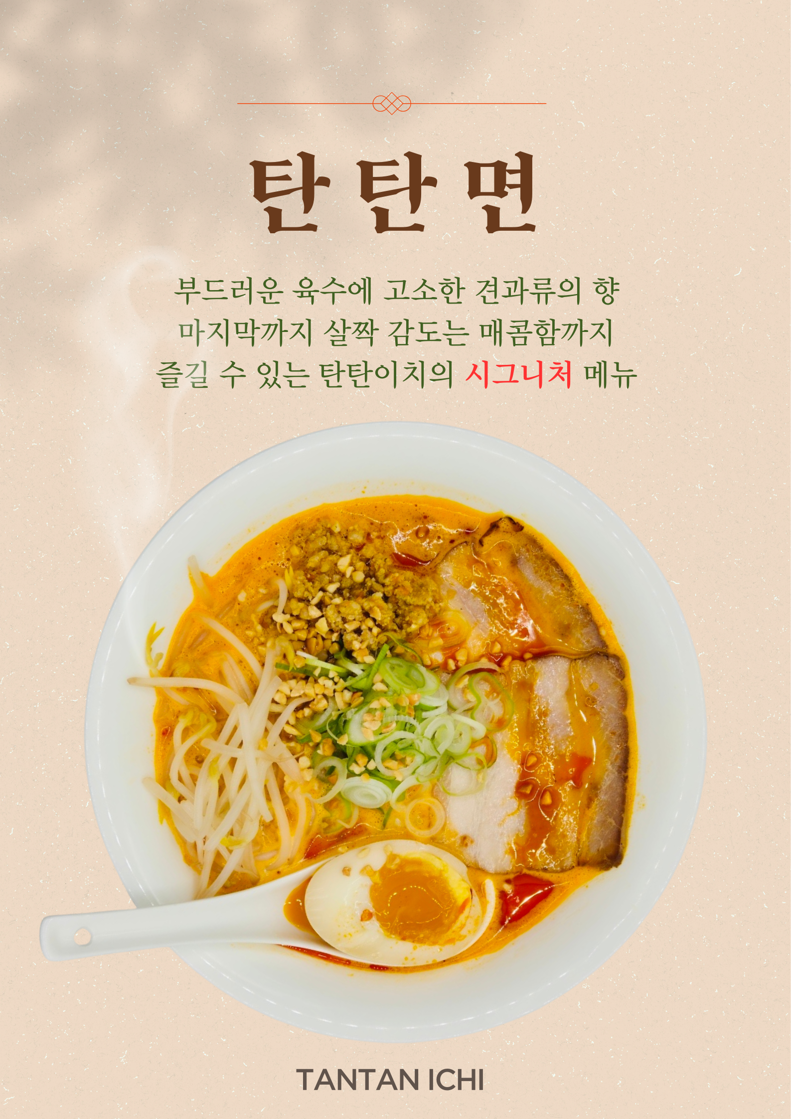 기본 탄탄면은 안 맵고, 진한 국물이 밥을 부르는 맛이에요