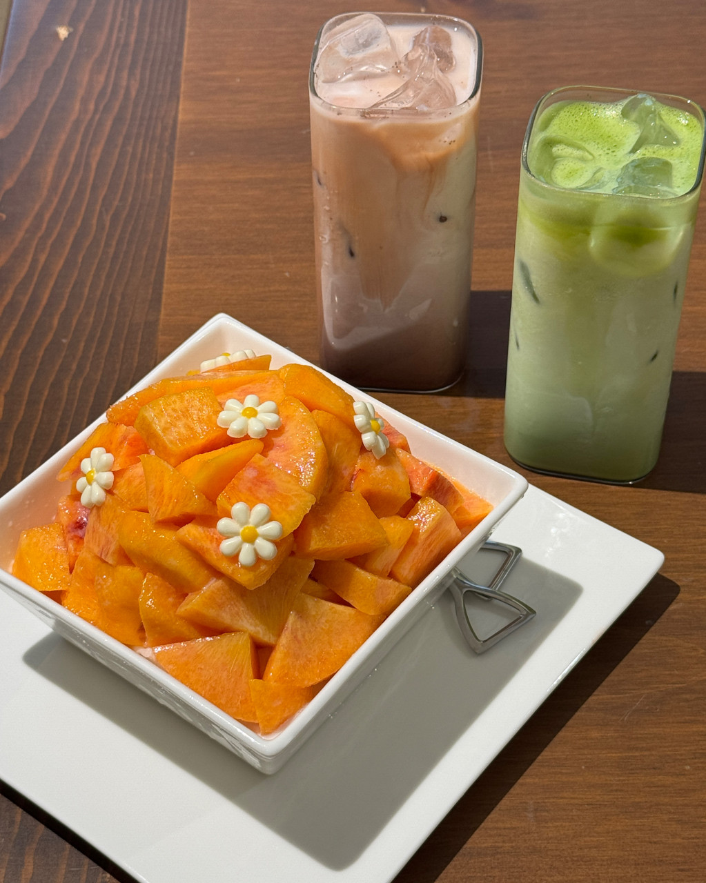 애플망고 빙수는 망고가 듬뿍 올라가고 귀여운 꽃 장식까지 더해져 비주얼이 참 상큼했습니다! 망고도 달고 시원해 만족스러웠어요.