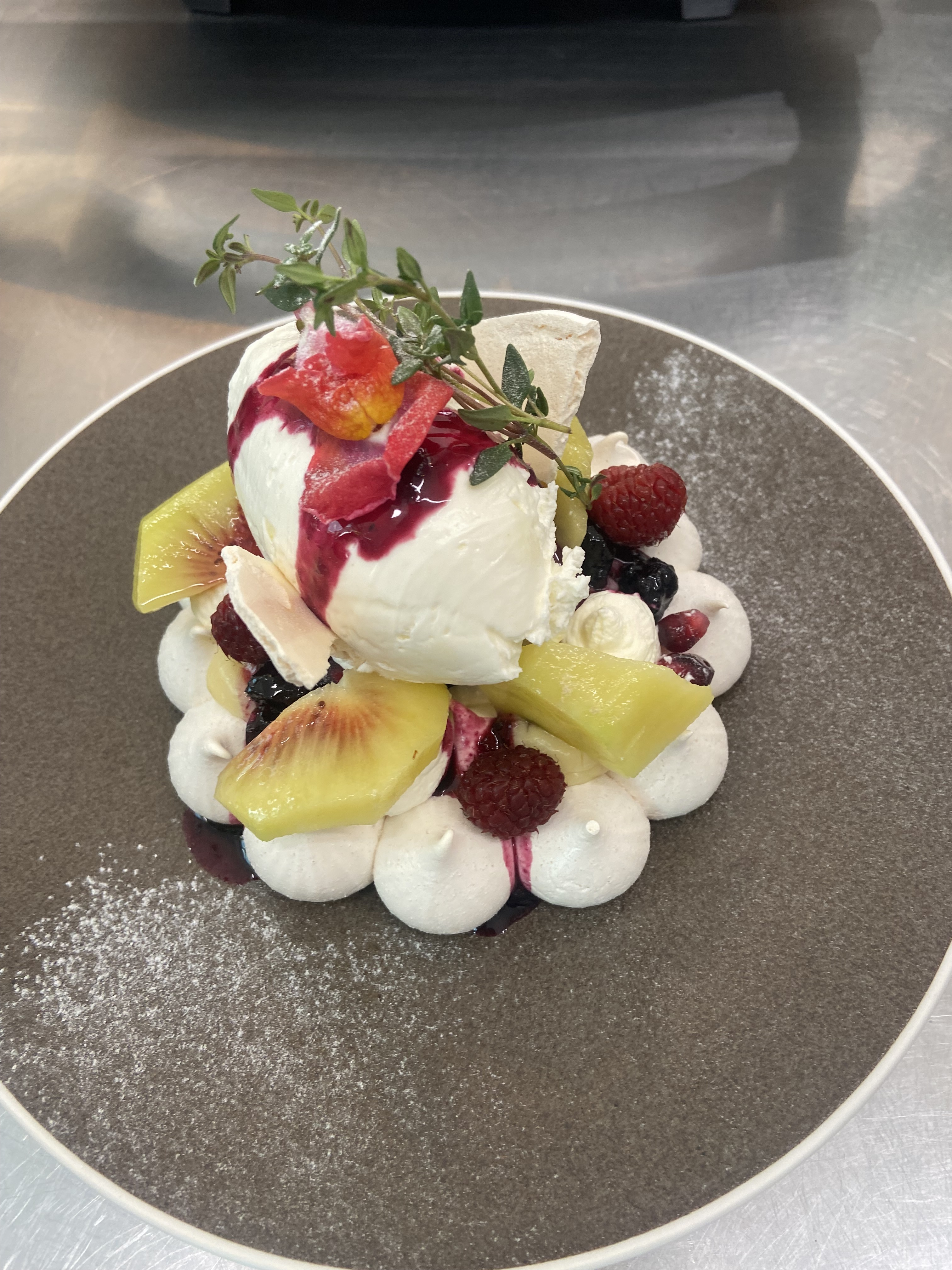 디저트 파블로바는 위에 체리와 블루베리를 얹어주세요 달달하니 맛있어요